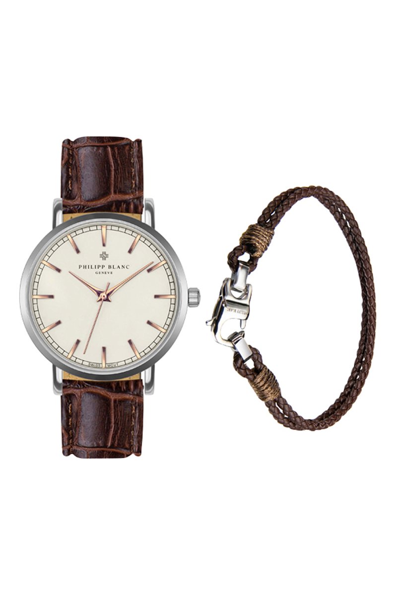 Set Leren & Quartz Horloge en Leren Horlogeband Basel
