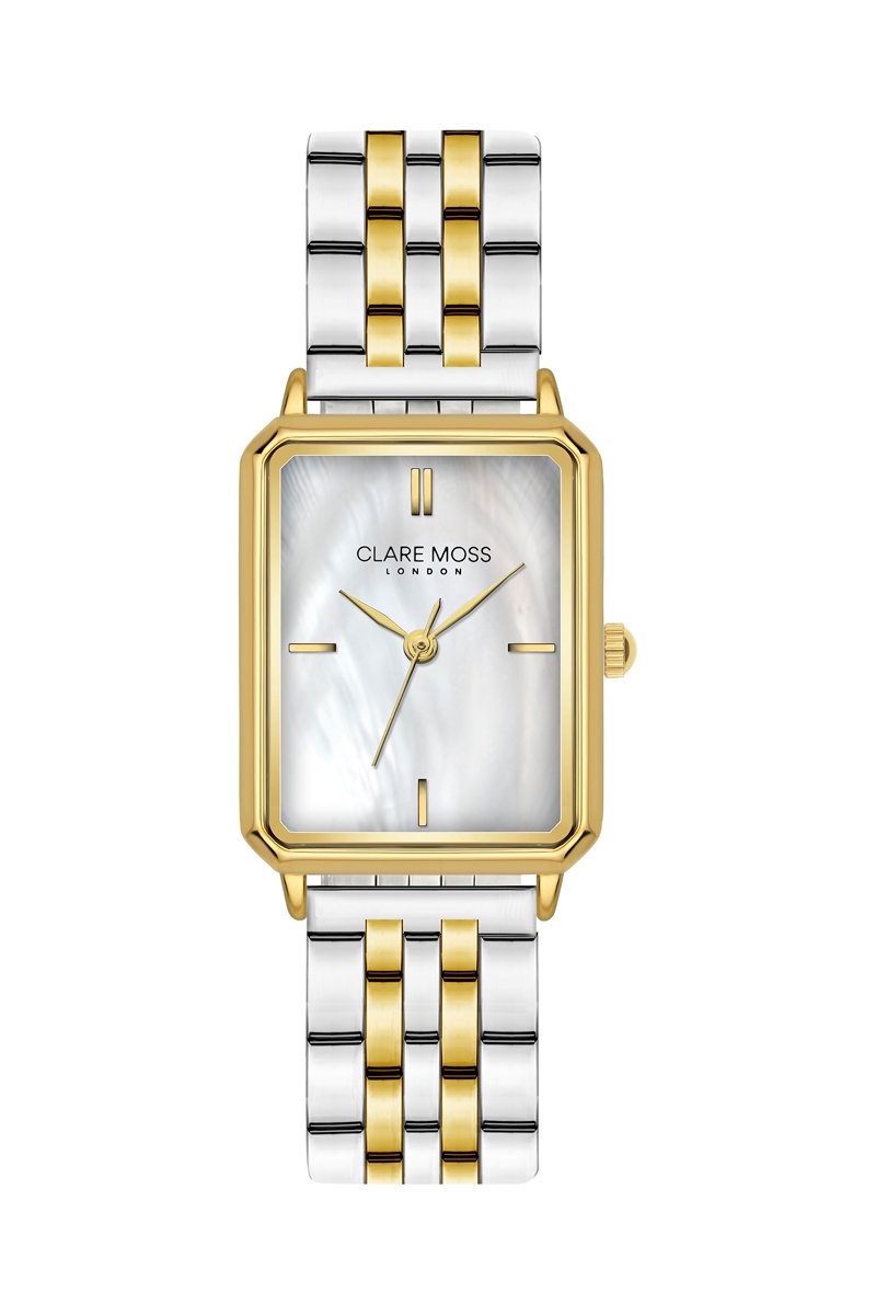 Stalen Quartz Horloge met Parelmoer Champagne - Zilverkleurig en Goudkleurig