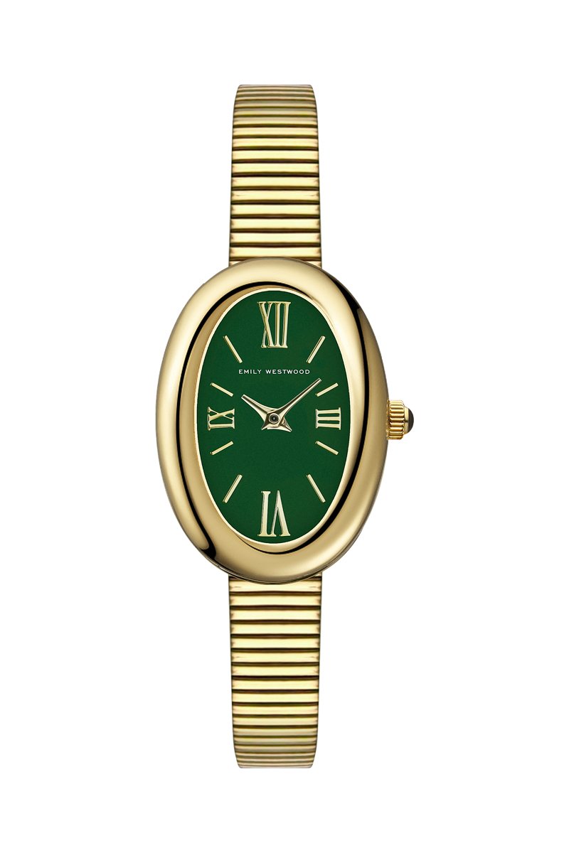 Stalen Quartz Horloge - Goudkleurig en Groen - Emily Westwood