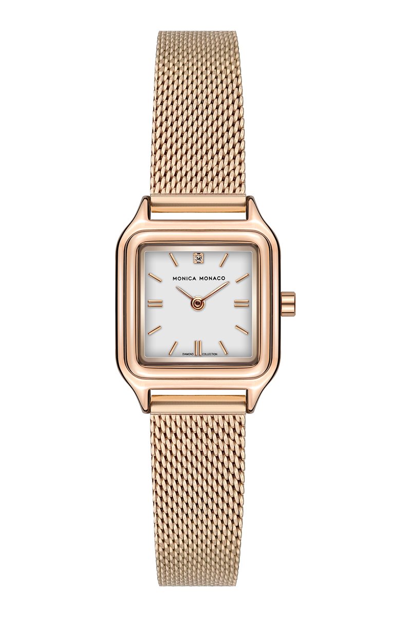 Stalen Quartz Horloge en Diamanten - Monica Monaco