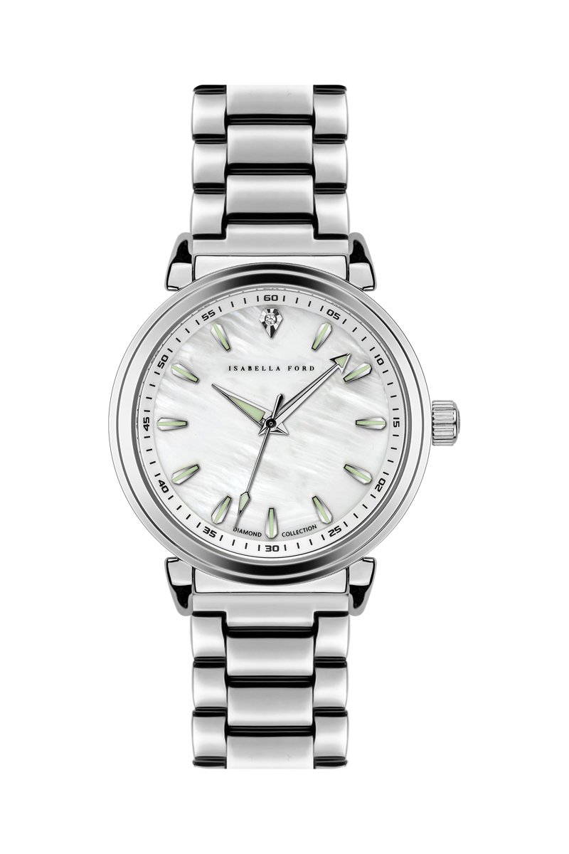 Stalen Quartz Horloge met diamant en parelmoer Joie