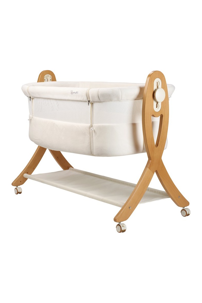 Aan de kant van het bed kan de co-sleeper opengeritst worden.