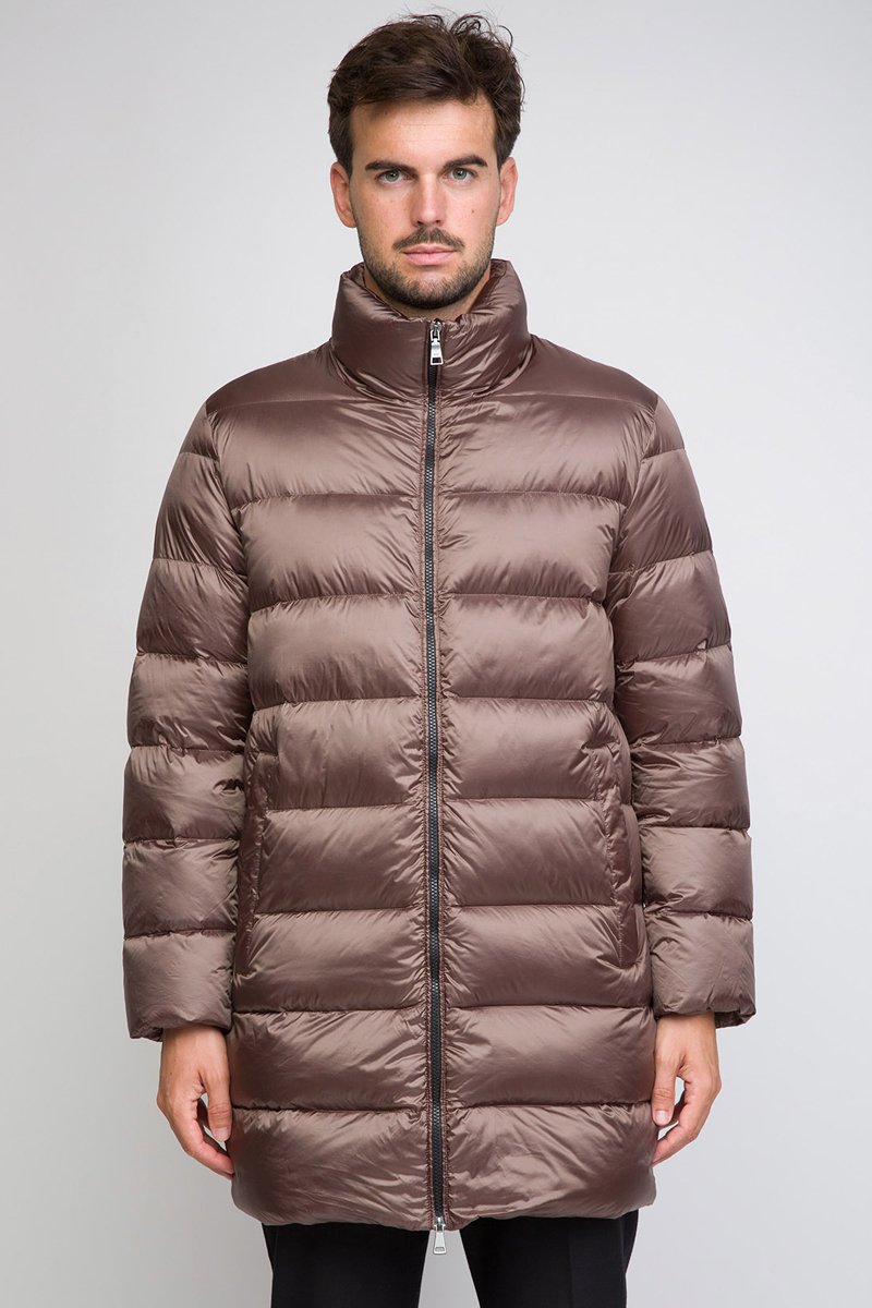 Lange Gewatteerde Jas Bruin