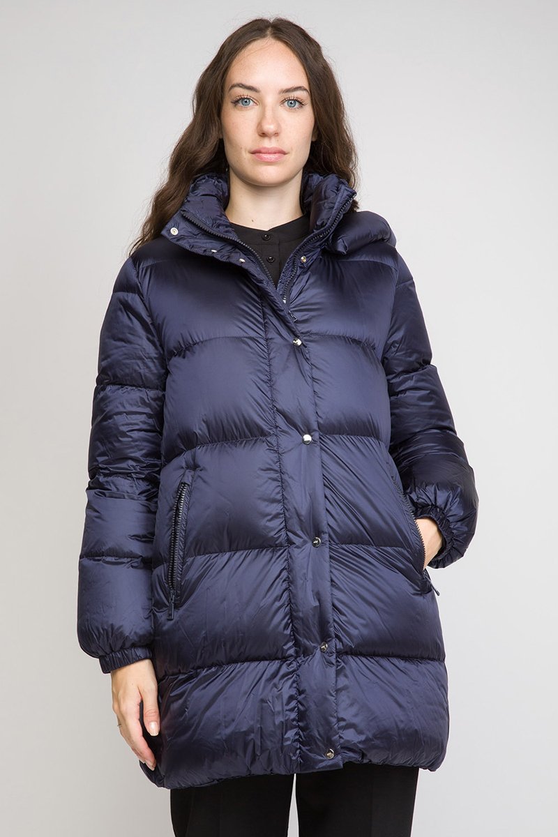 Lange Gewatteerde Jas met Capuchon - Marineblauw