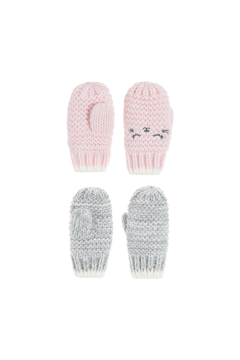 2 Paar Gehaakte Wanten - Roze en Gemêleerd Lichtgrijs