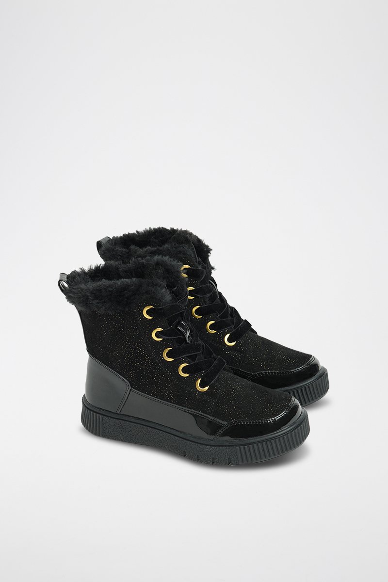 Vetersluiting aan de voorkant, rits- en klittenbandsluiting aan de zijkant.