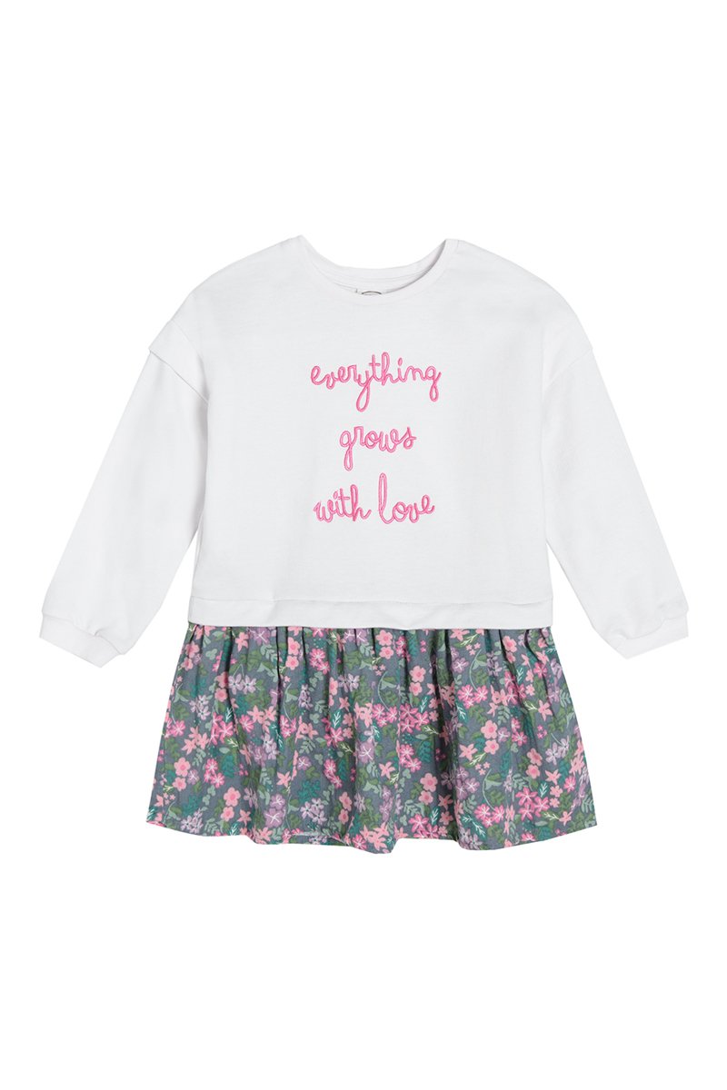 Jurk Trompe-l'œil - Wit en Donkergrijs