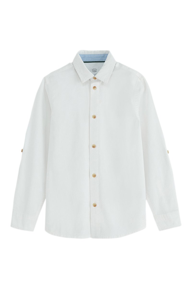 Overhemd met lange omslagmouwen met knoopbandje.