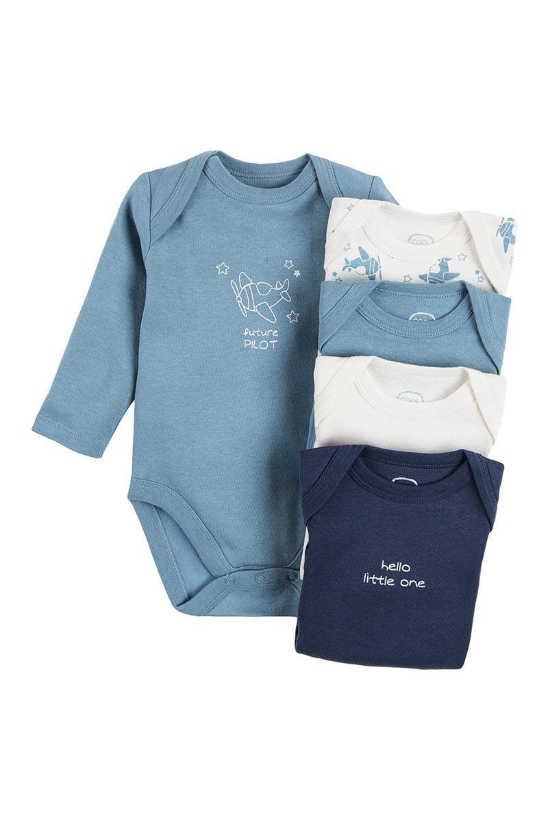 5 Rompertjes - Lichtblauw, wit en marineblauw