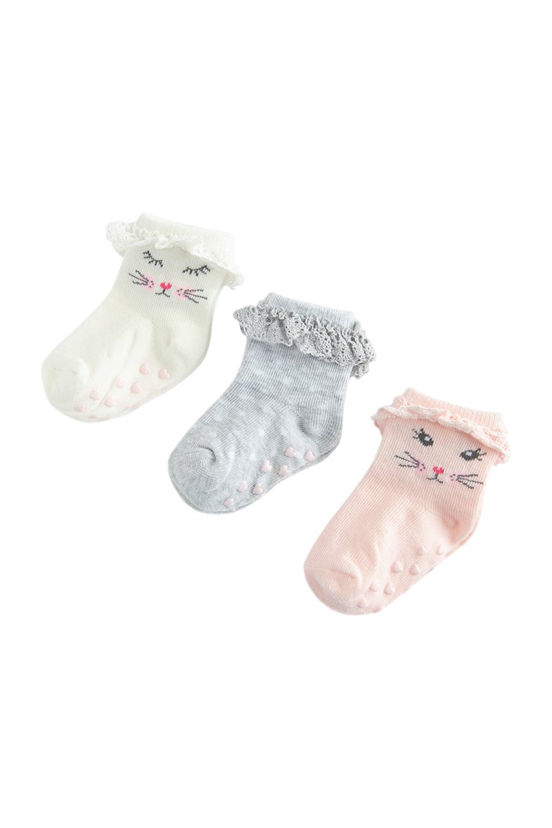 3 Paar Antislipsokken - Ecru, gemêleerd grijs en lichtroze