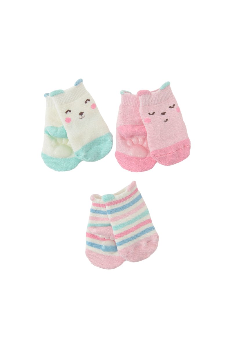 3 Paar Antislipsokken met Oortjes - Ecru, lichtroze en wit