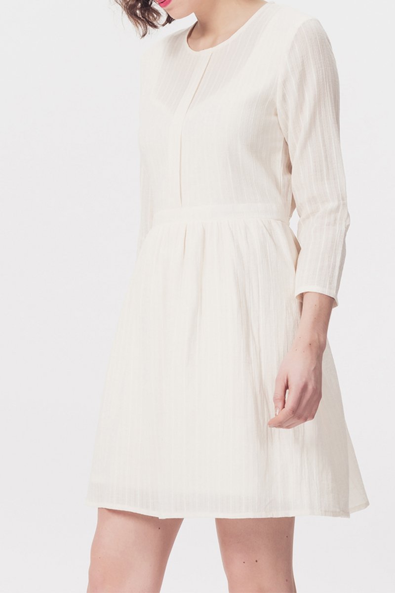 Klepsluiting aan de voorkant en druppelvormige uitsnijding met knoop aan de achterkant.