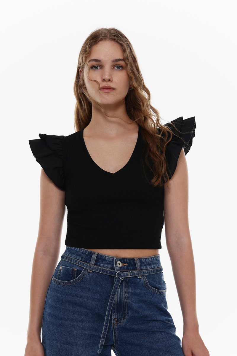 Materiaal: 63% polyester, 18% katoen, 17% viscose en 2% elastaan