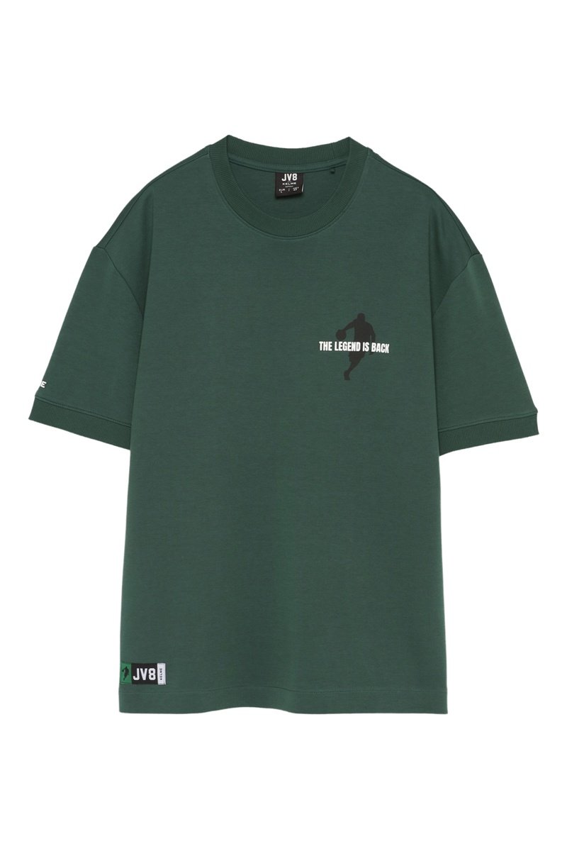Belettering op de linkermouw. aan de voorkant, aan de zijkant en aan de achterkant.
