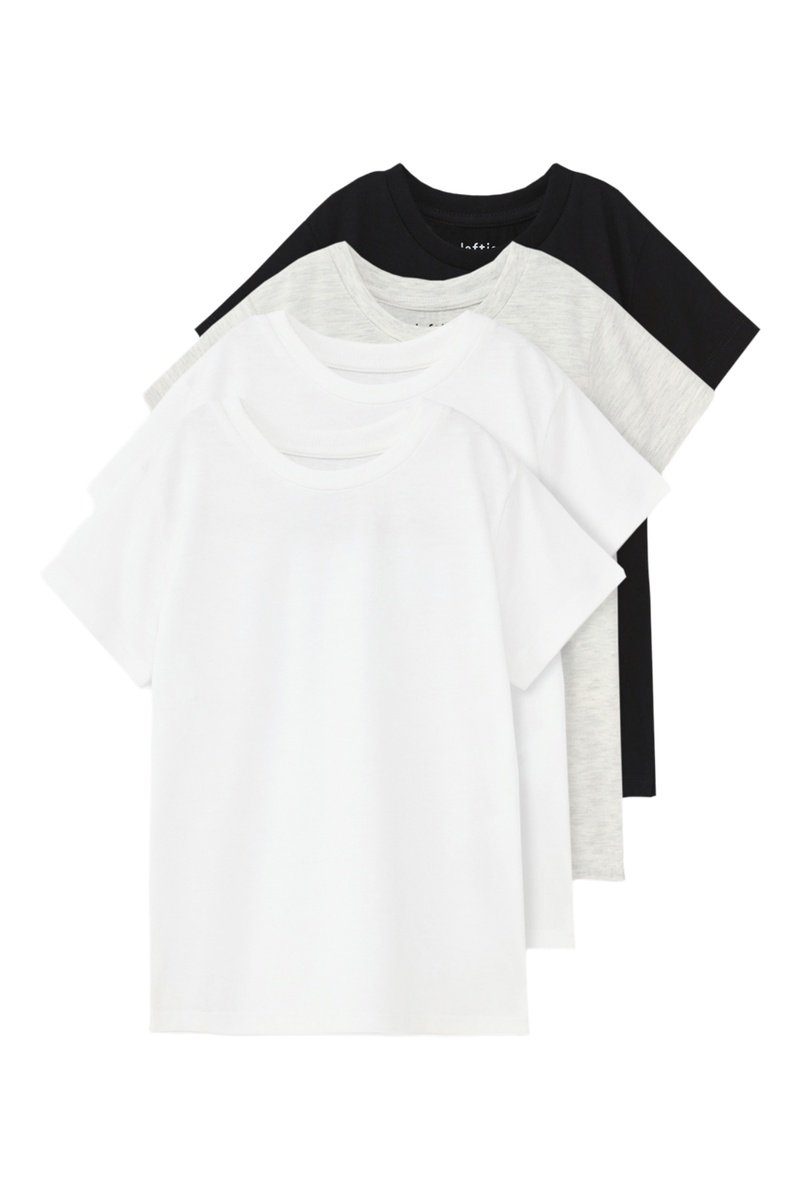 4 T-shirts - Wit, gemêleerd lichtgrijs en zwart