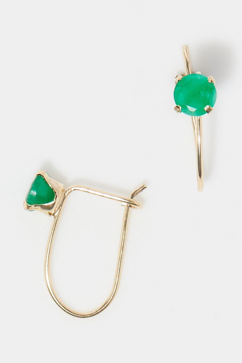 Oorbellen van geelgoud ingelegd met 1 smaragd.