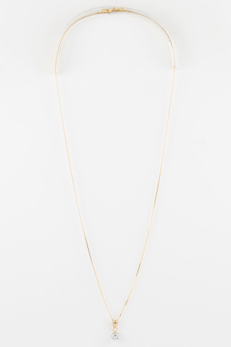 Hanger van geelgoud ingelegd met zirkoniumoxide.