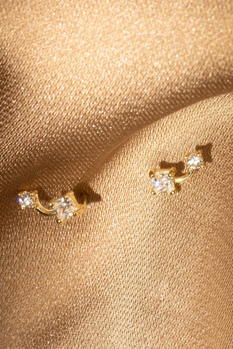 Oorbellen van geelgoud ingelegd met zirkonia's.