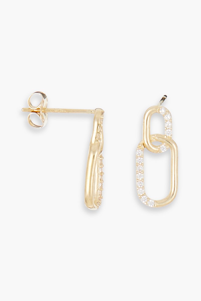 Oorbellen van geelgoud ingelegd met zirkonia's.