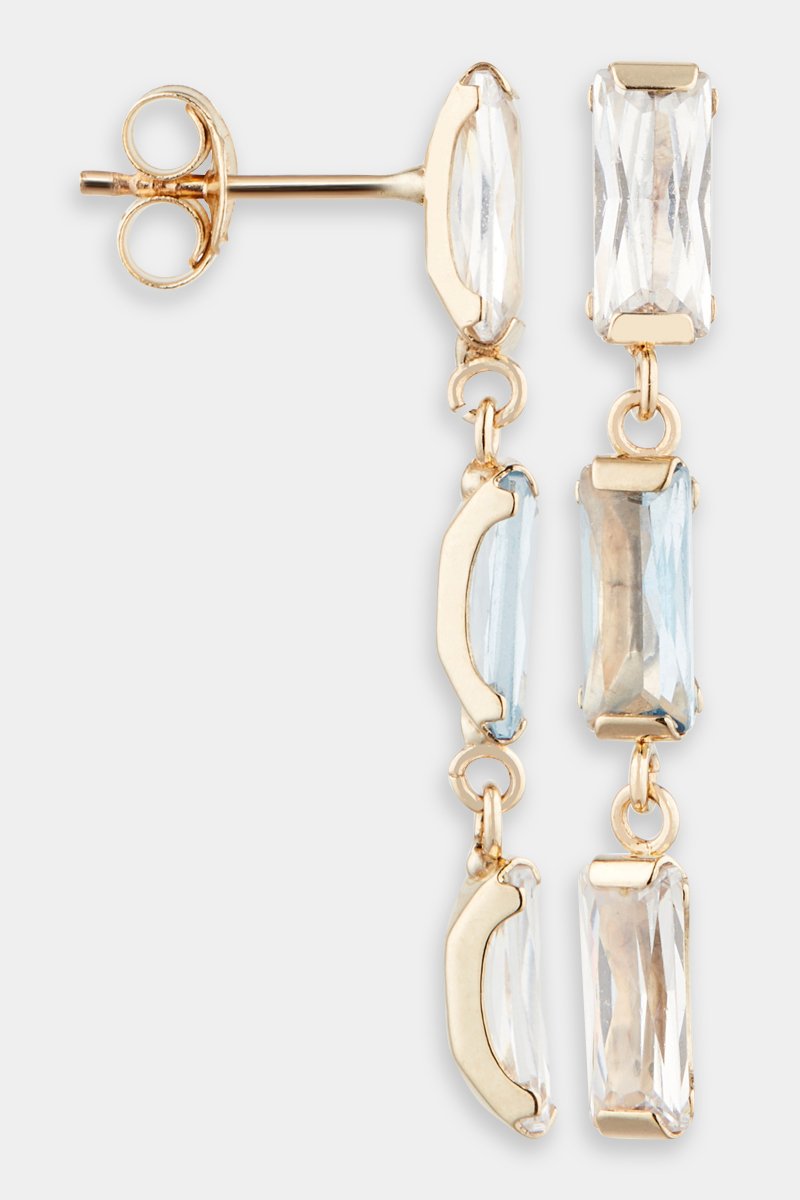 Hangende oorbellen van geelgoud ingelegd met zirkonia's.
