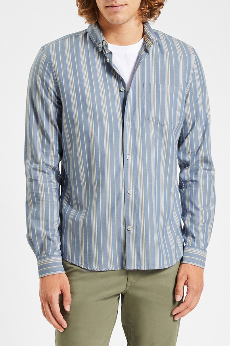 Biologisch Katoenen Overhemd Slim Fit - Hemelsblauw en Grijs