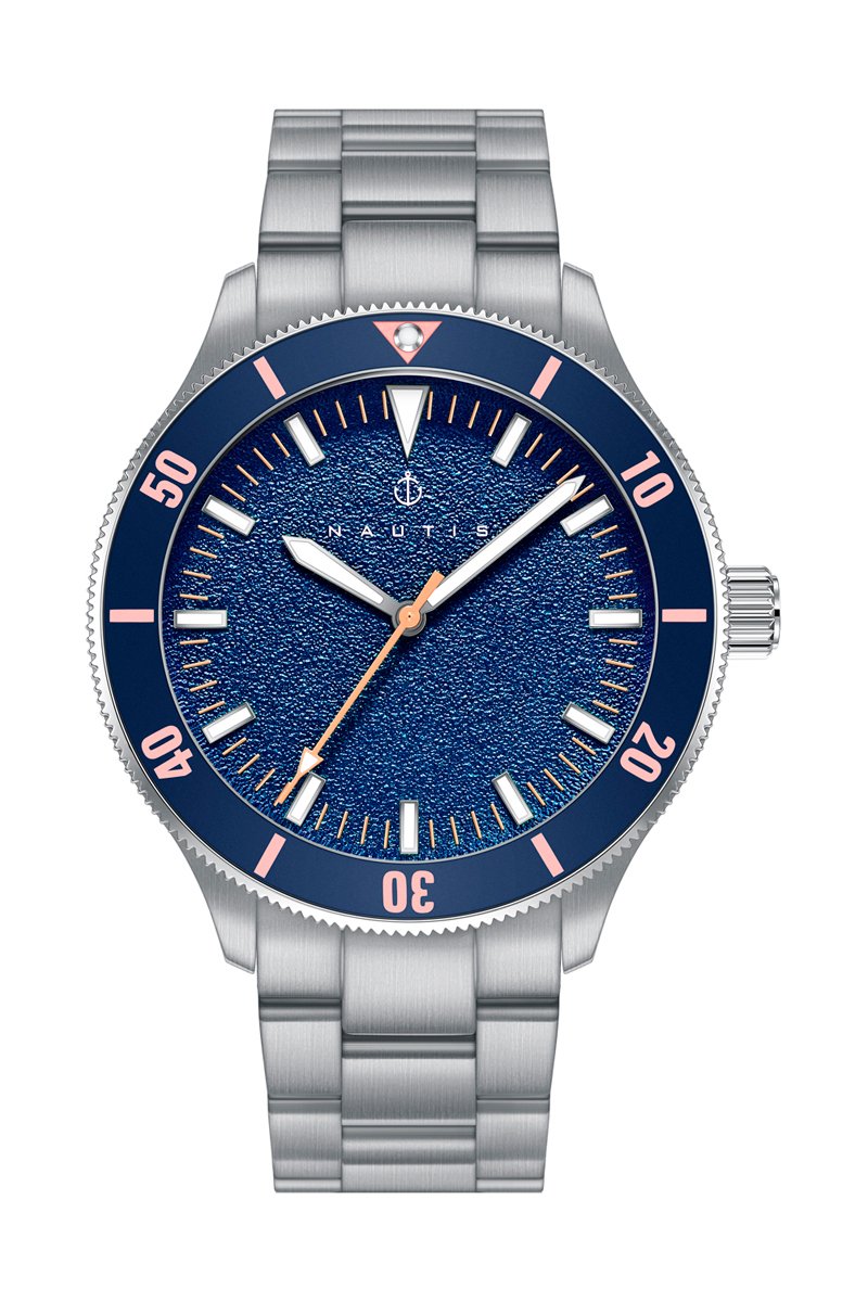 Stalen Quartz Horloge Deacon - Zilverkleurig en Marineblauw - Nautis