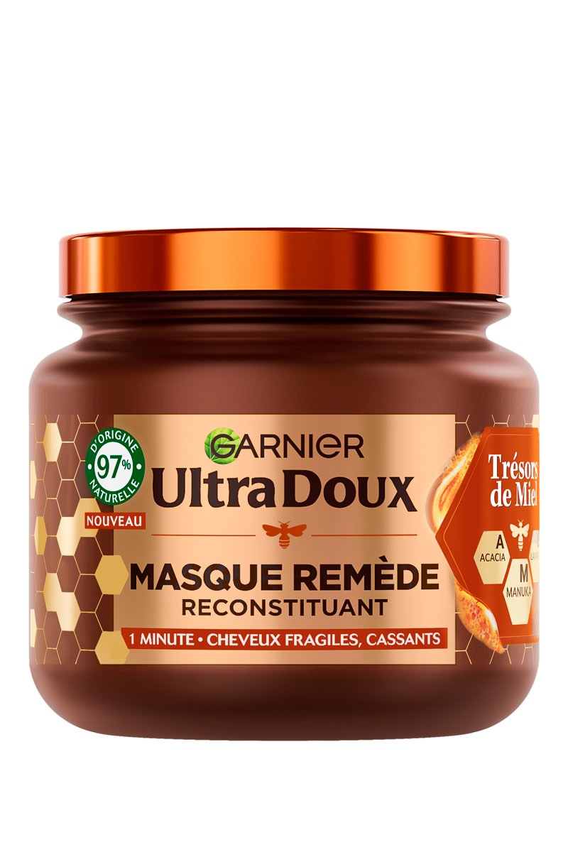 Ontdek onze remedie met 3 honingsoorten: Acacia, Manuka en Lavendel, beroemd om hun herstellende eigenschappen, verstevigend en voedend, geformuleerd in ons herstellende masker.