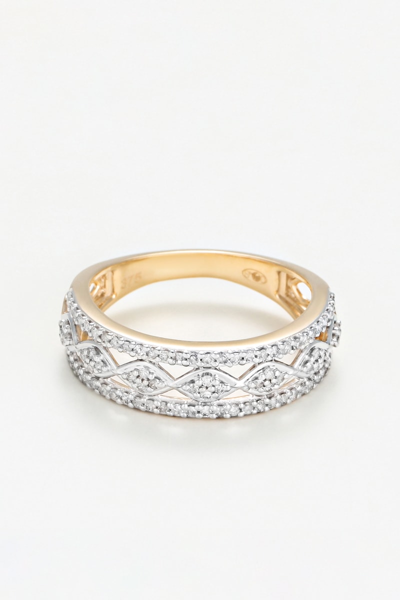 Materiaal: geelgoud 375/1000 en diamanten 0,3 karaat/86
