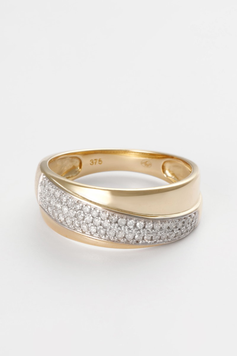 Materiaal: geelgoud 375/1000 en diamanten 0,293 karaat/54