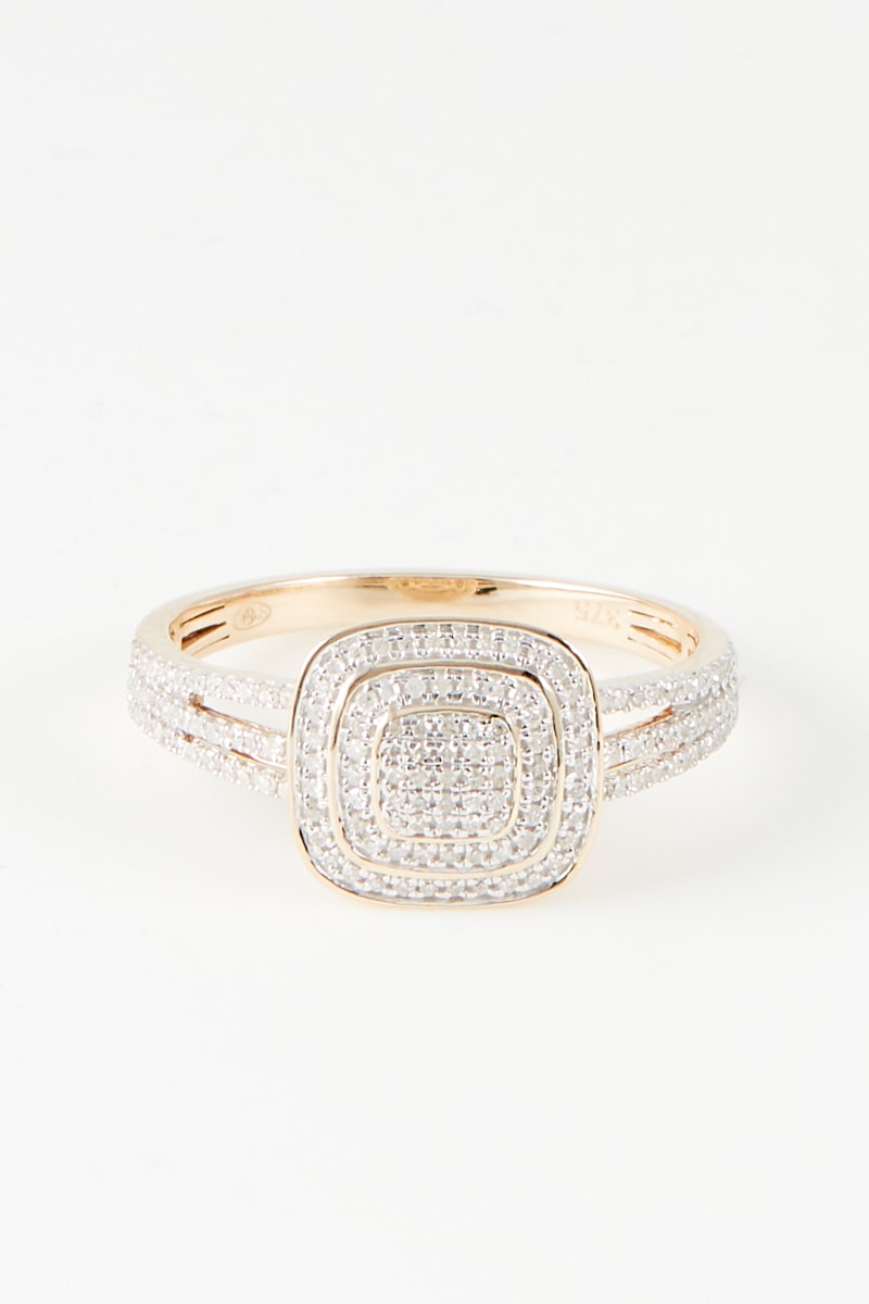 Materiaal: geelgoud 375/1000 en diamanten 0,28 karaat/155