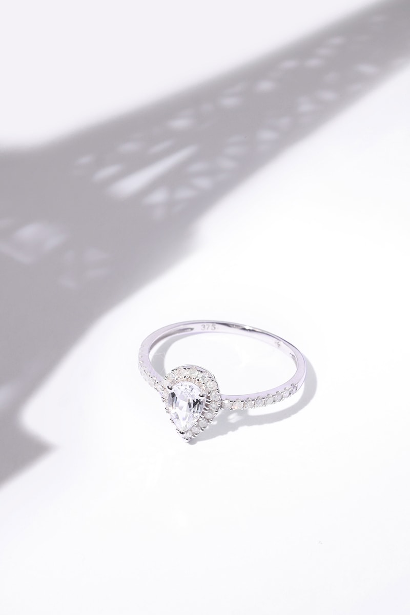 Materiaal: witgoud 375/1000, diamanten 0,202 karaat/32 en topaas 0,825 karaat/1