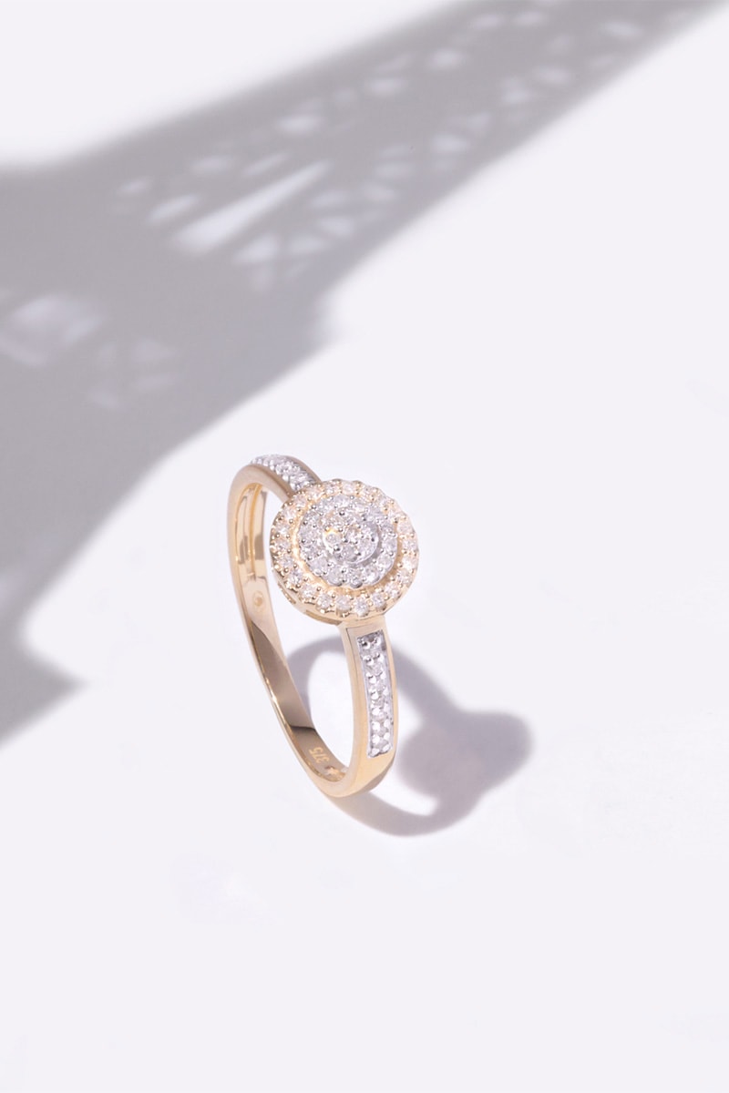 Materiaal: geelgoud 375/1000 en diamant 0,142 karaat/57