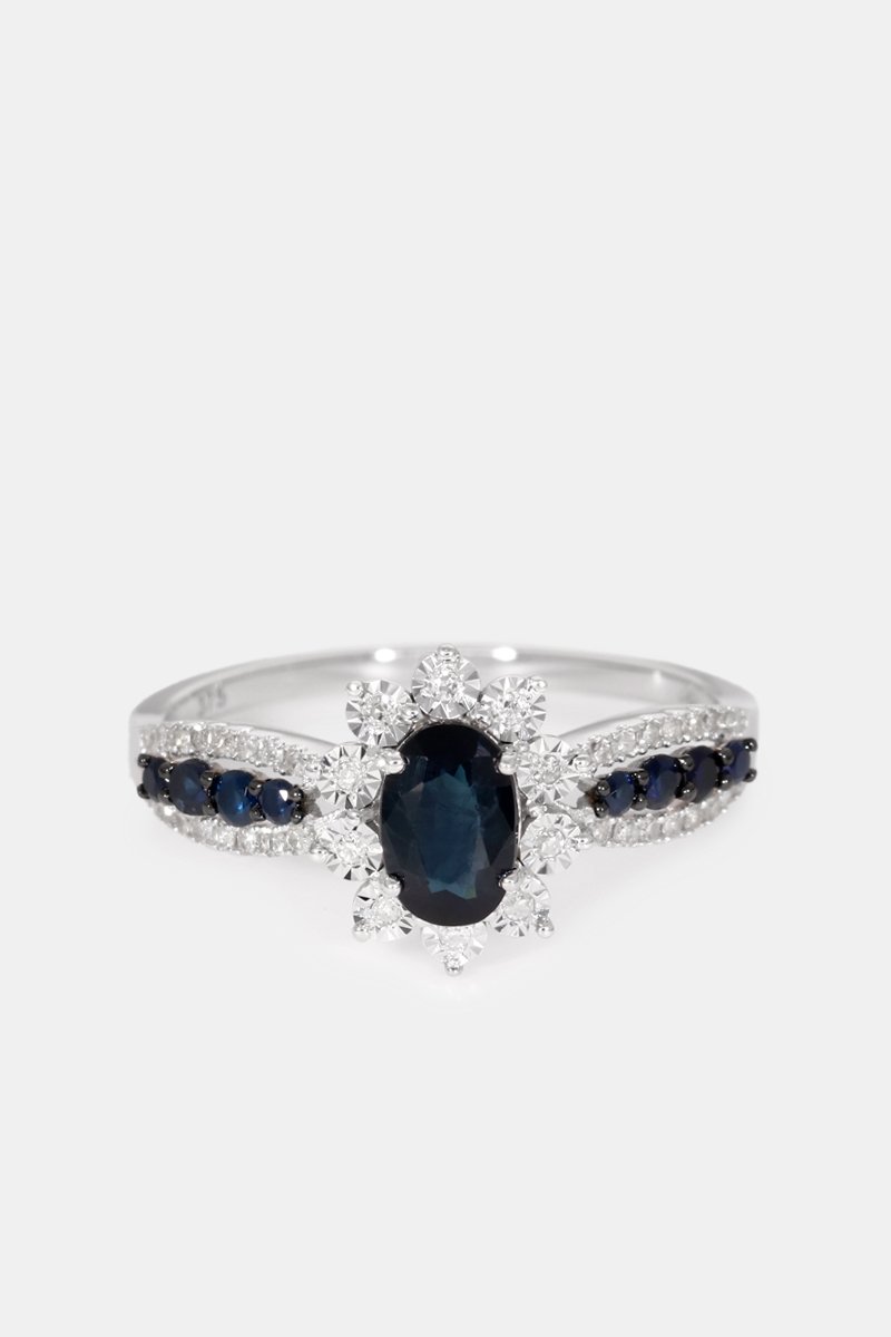 Ring Nuit Argentée - Witgoud, Diamanten en Saffieren