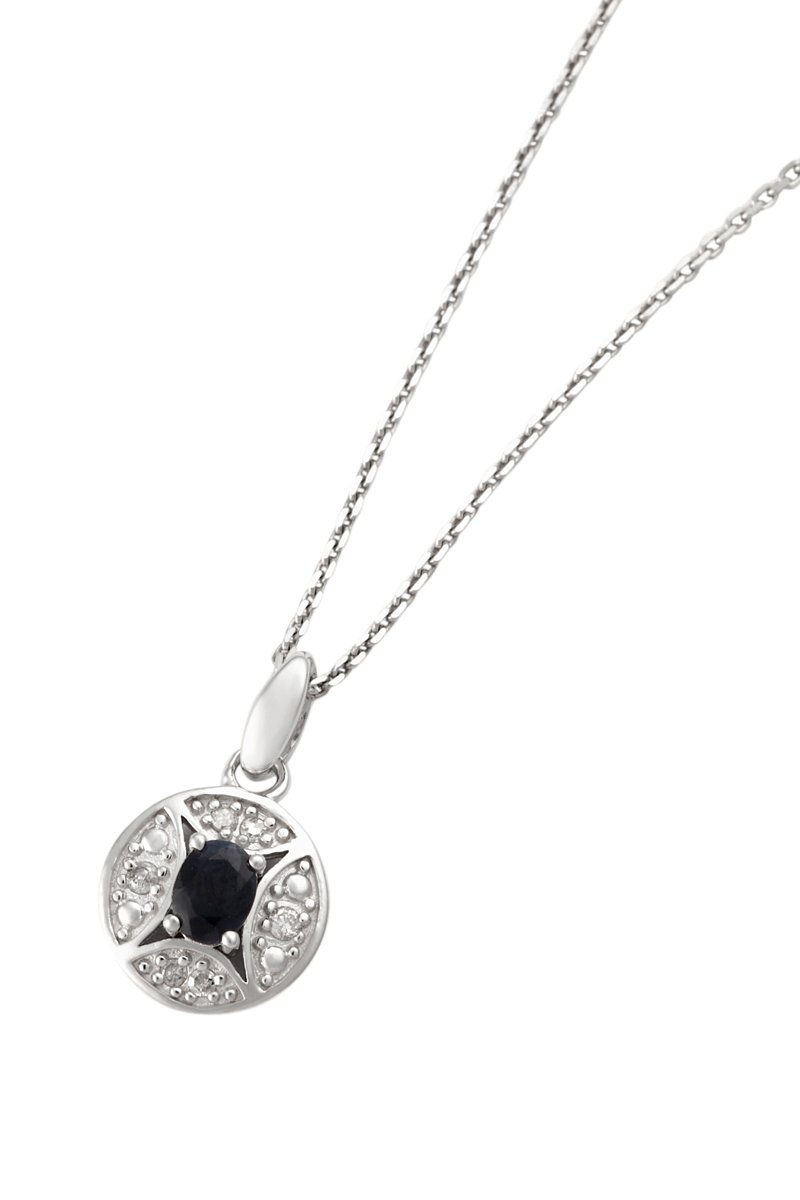 Materiaal: witgoud 375/1000, diamanten 0,04 karaat/6 en saffier 0,25 karaat/1