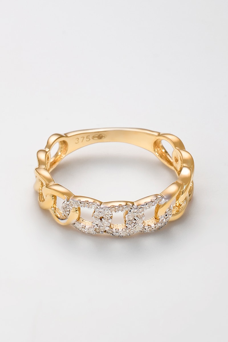 Materiaal: geelgoud 375/1000 en diamanten 0,12 karaat/42