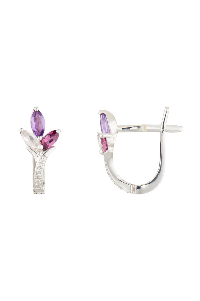 Oorbellen Heliconia - Witgoud, Diamanten 0,03 Karaat/8, Amethisten, Kwarts en Rhodonieten