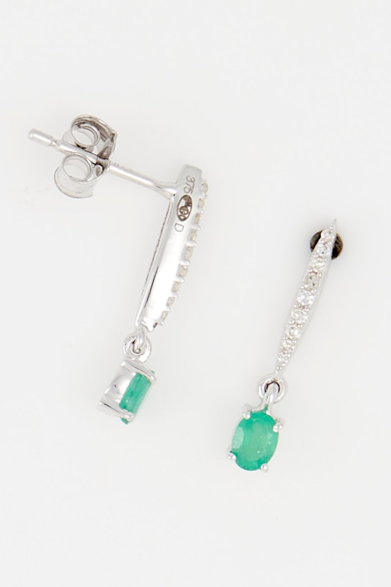 Oorbellen Savitr - Witgoud, Diamanten en Smaragd