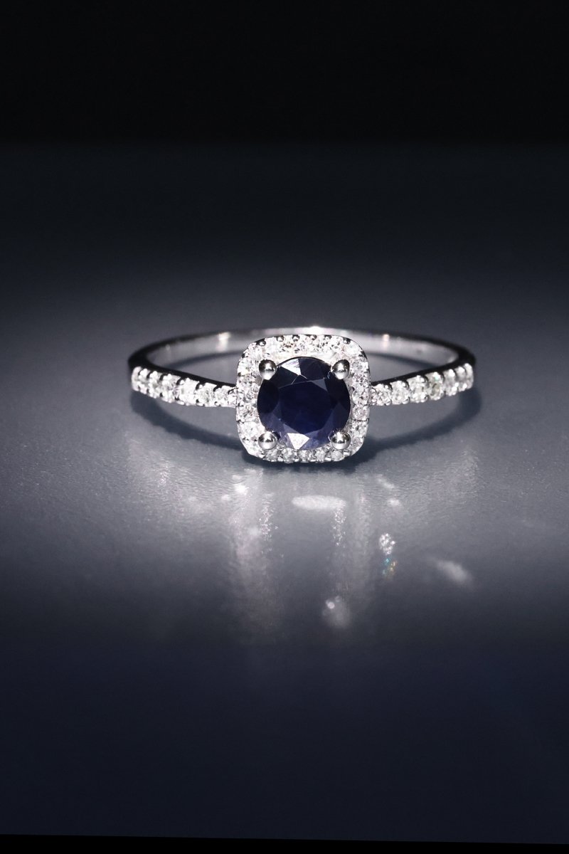 Verlovingsring Bleu - Witgoud, Diamanten 0,14 Karaat/26 en Saffier 0,7 Karaat
