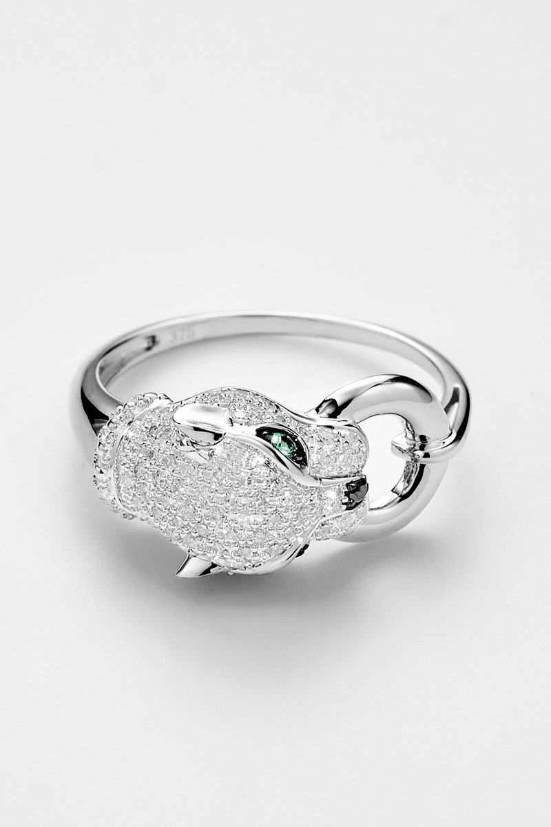 Ring van witgoud ingelegd met diamanten en 2 smaragden.