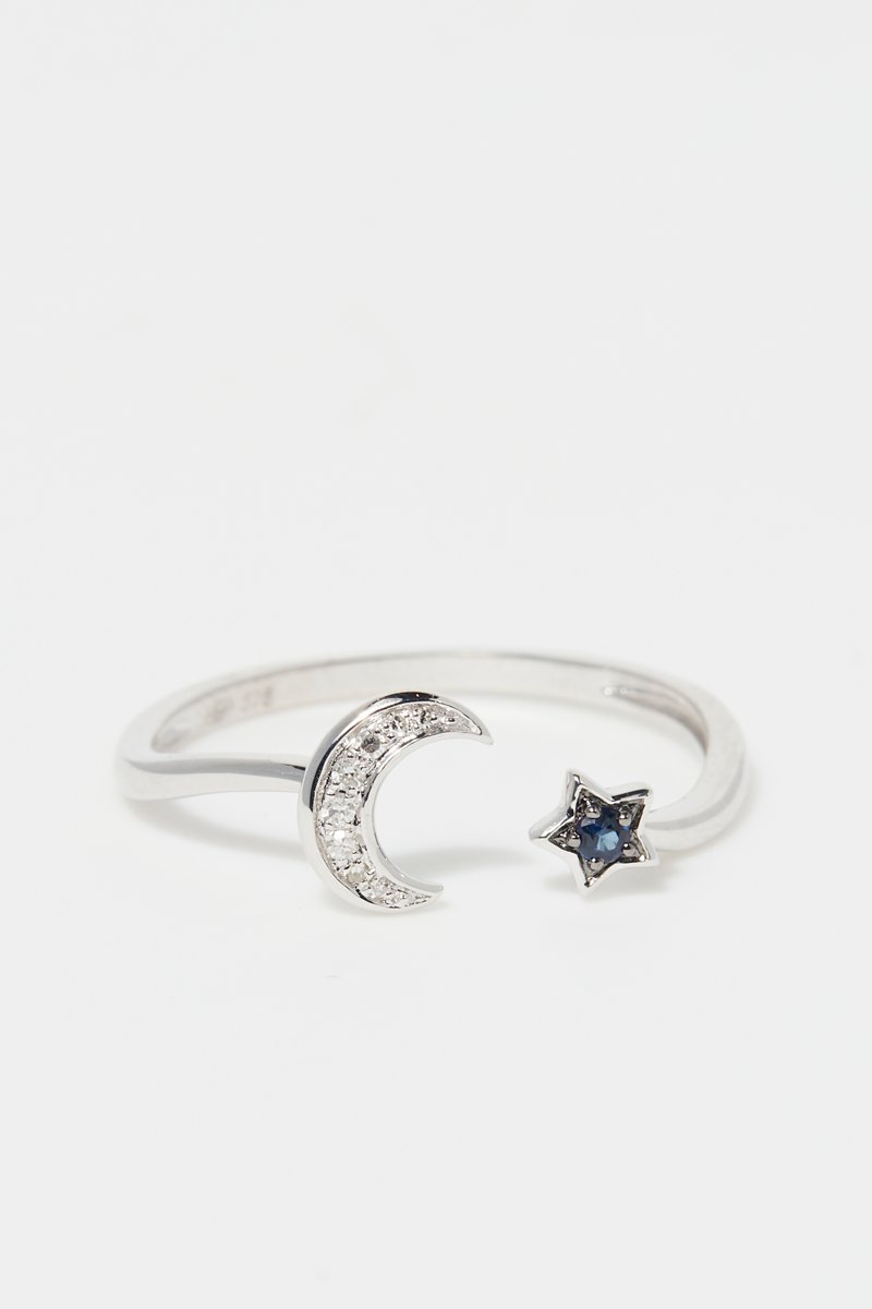 Ring - Witgoud, Diamanten en Saffier
