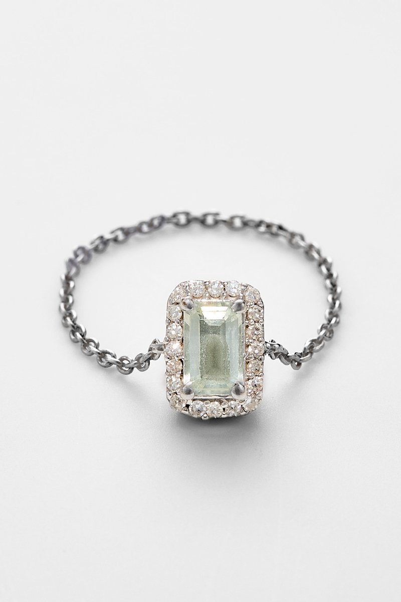 Materiaal: witgoud 375/1000, diamanten 0,06 karaat/20 en amazoniet