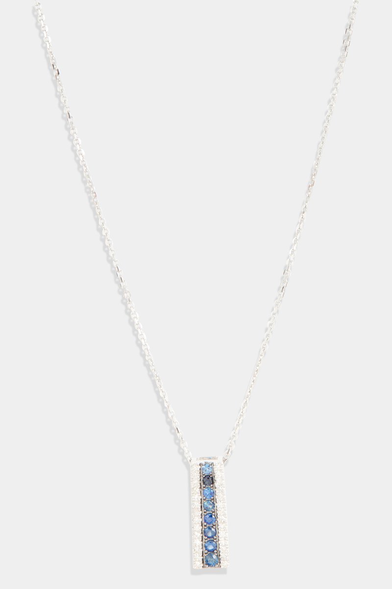 Hanger van witgoud ingelegd met 28 diamanten en 8 saffieren.