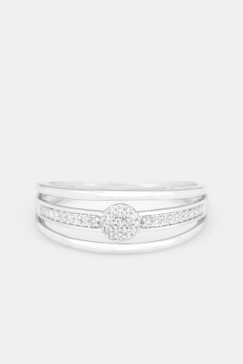 Triple ring van witgoud ingelegd met 9 diamanten.
