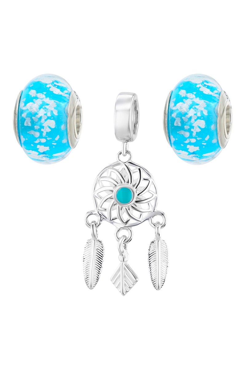 2 Bedeltjes en 1 Hangend Bedeltje - Zilver en Muranoglas