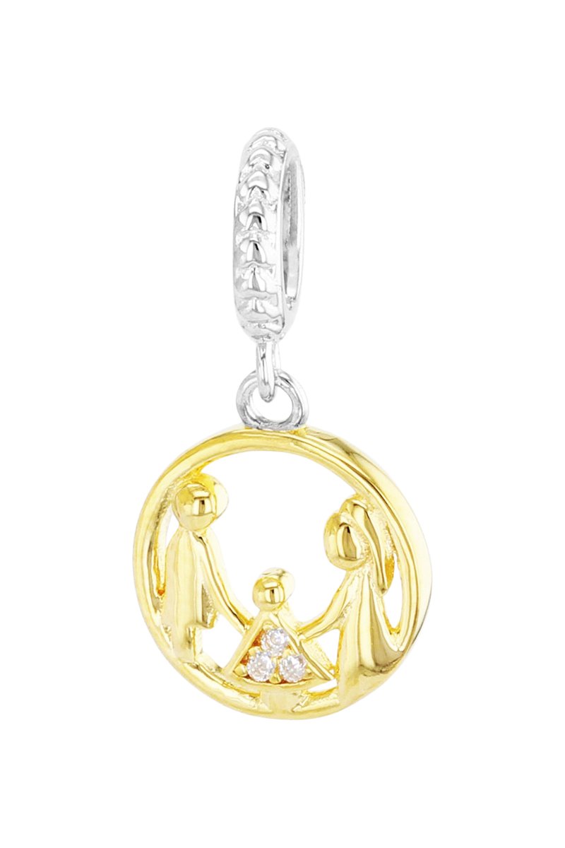 Bedeltje van zilver doublé geelgoud ingelegd met zirkonia's.