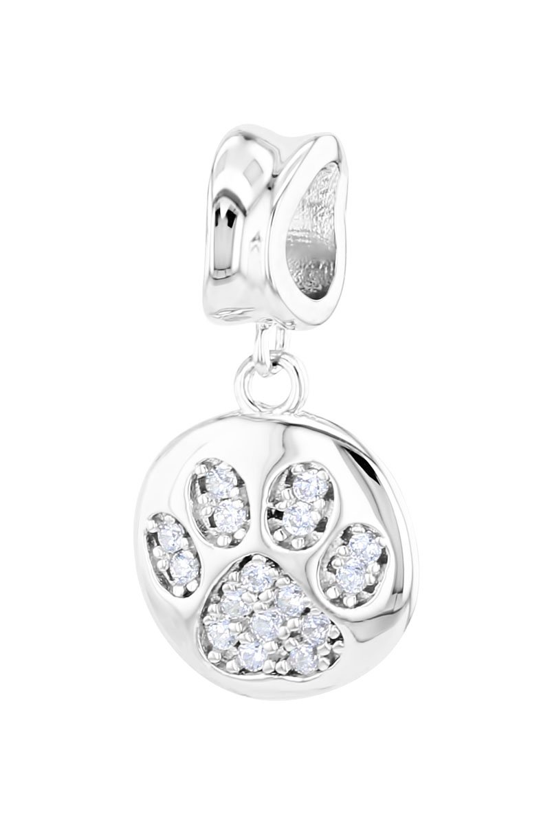 Hangend bedeltje van zilver ingelegd met kristallen.