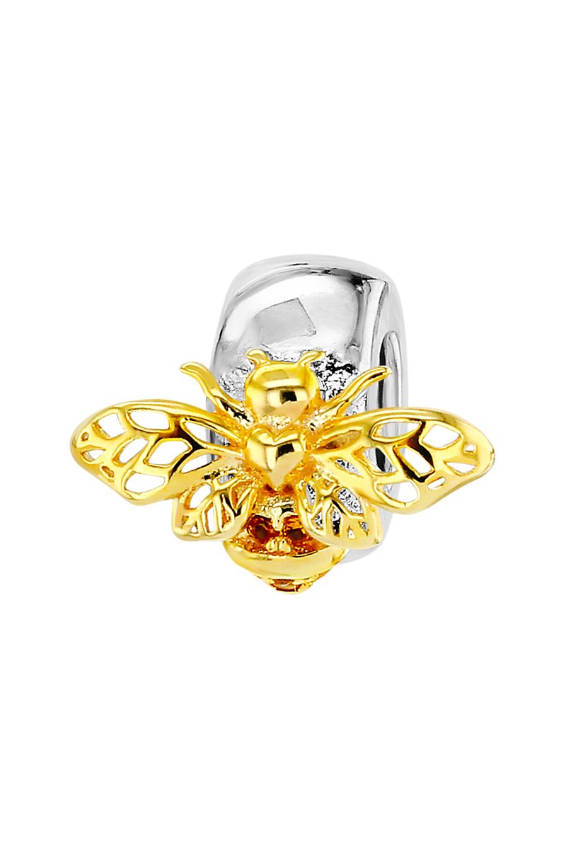 Bedeltje van zilver en zilver doublé geelgoud ingelegd met zirkonia's.