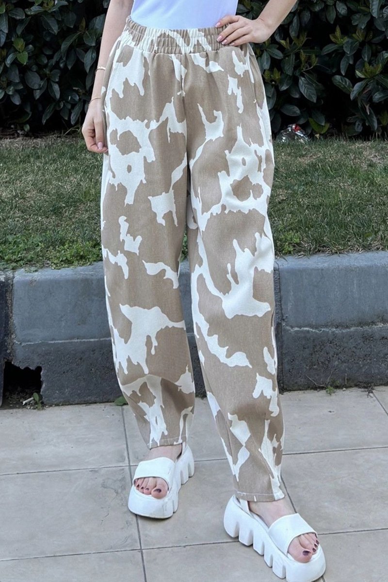 Broek Hoge Taille - Beige en Bruin
