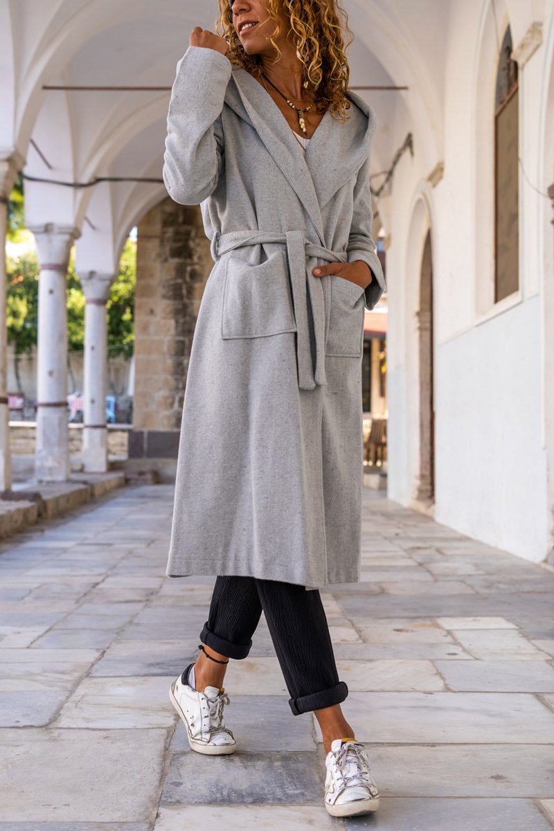 Wollen Jas met Capuchon - Gemêleerd Grijs