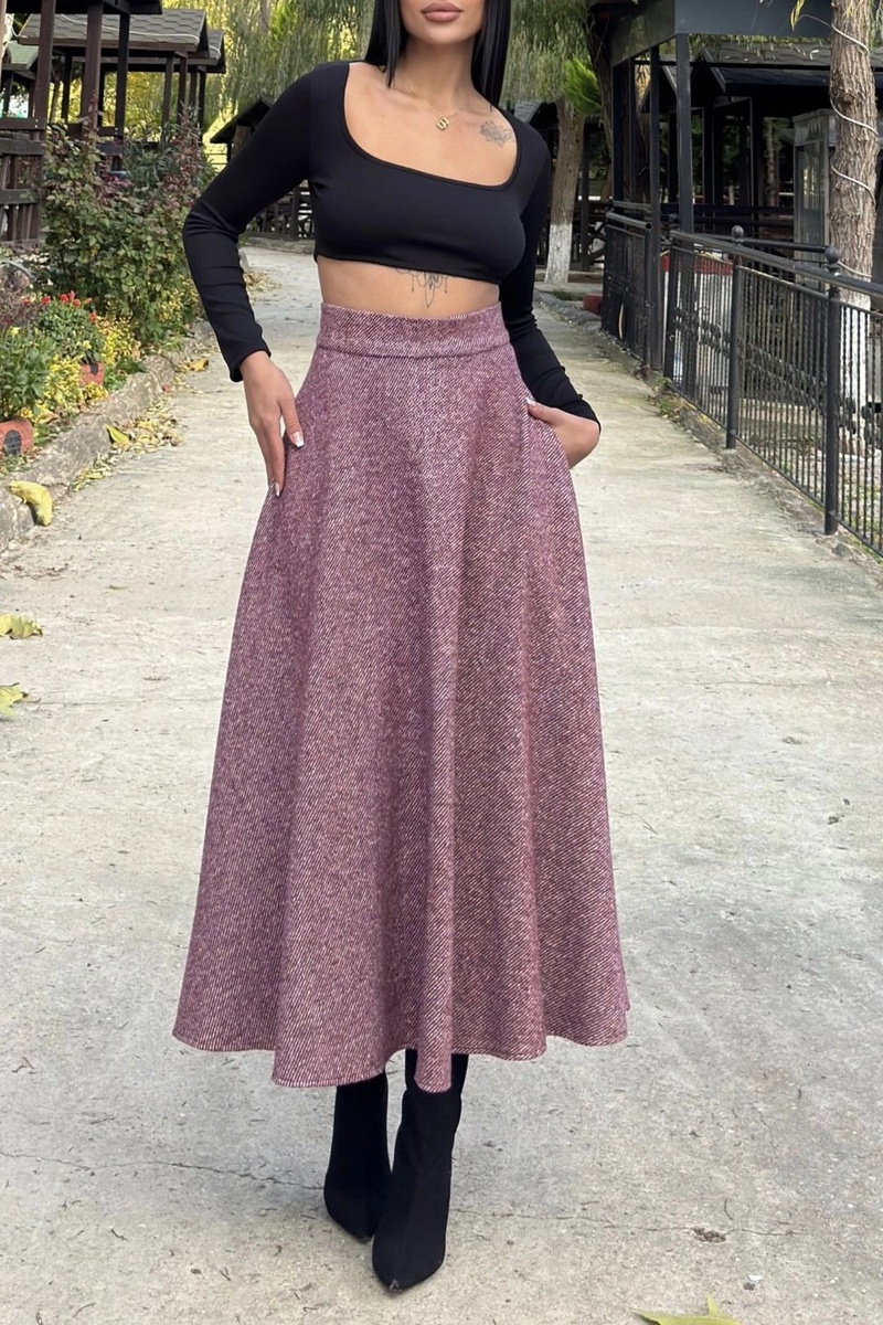 Lange Rok Hoge Taille - Gemêleerd Bordeauxrood